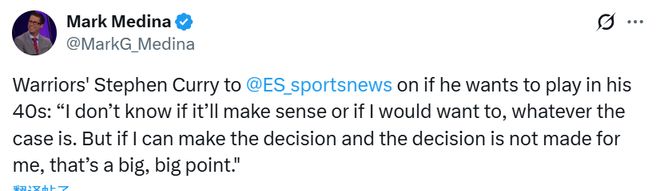 “我只能说,我希望自己能有选择权,而且前提是我的能力确实还能支撑我继续打球,”库里说道,“我不确定(打到40岁)是否合理,也不确定自己届时是否还想打,各种情况都有可能。但如果我能自己做决定,而不是被迫接受别人替我做的决定,这一点对我来说非常重要。”