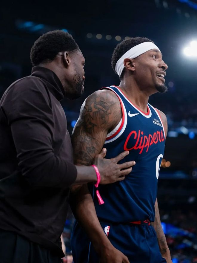 洛杉矶快船更衣室的空气仿佛凝固了,3胜5负西部第12的战绩像一记响亮的耳光,抽在这支休赛期豪组四巨头的“银河战舰”脸上。当美媒将比尔、保罗、莫兰特、怀特和麦科勒姆列为开季最令人失望五人组时,快船竟独占两席——场均7.4分的比尔和2.3分的保罗,正用生涯最低效的表现摧毁球队的争冠梦想。