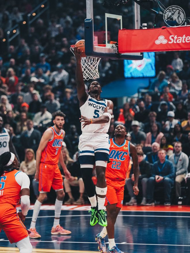 雷霆队的亚历山大得到40分、6个篮板和6次助攻,哈尔滕施泰因得到15分和7个篮板,米切尔得到13分,霍姆格伦得到12分和9个篮板,华莱士得到9分,威廉姆斯得到9分和5个篮板。森林狼队的爱德华兹得到31分、8个篮板和5次助攻,香农得到18分,里德得到12分,迪文琴佐得到11分和5个篮板,兰德尔得到10分、8个篮板和4次助攻,麦克丹尼尔斯得到10分和5个篮板,戈贝尔得到5分和12个篮板。